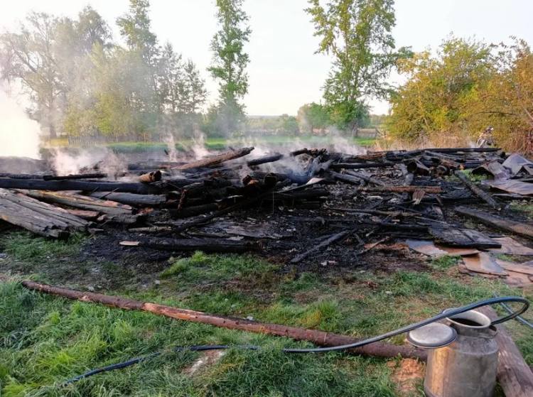 В результате пожара полностью сгорел сарй. Пострадавших и погибших нет.